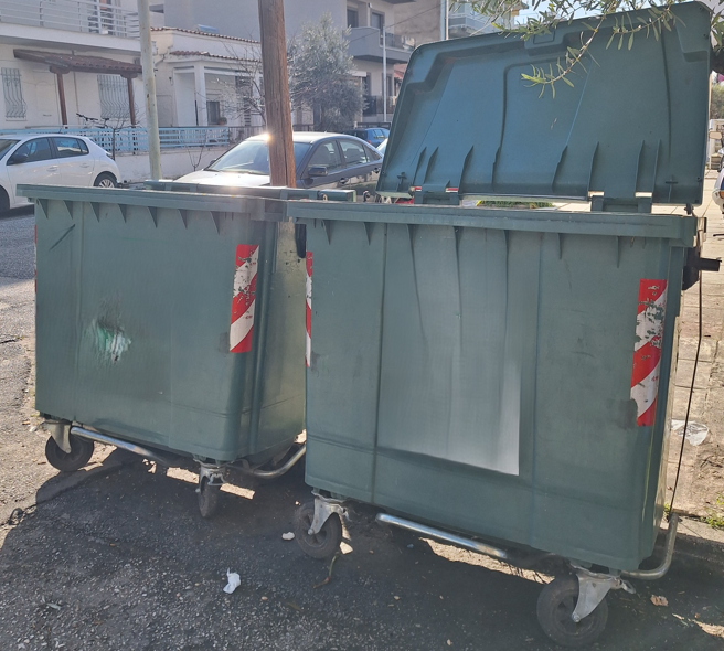 ΛΑΘΟΣ Ανοιχτό καπάκι πράσινου κάδου: ✘ |
