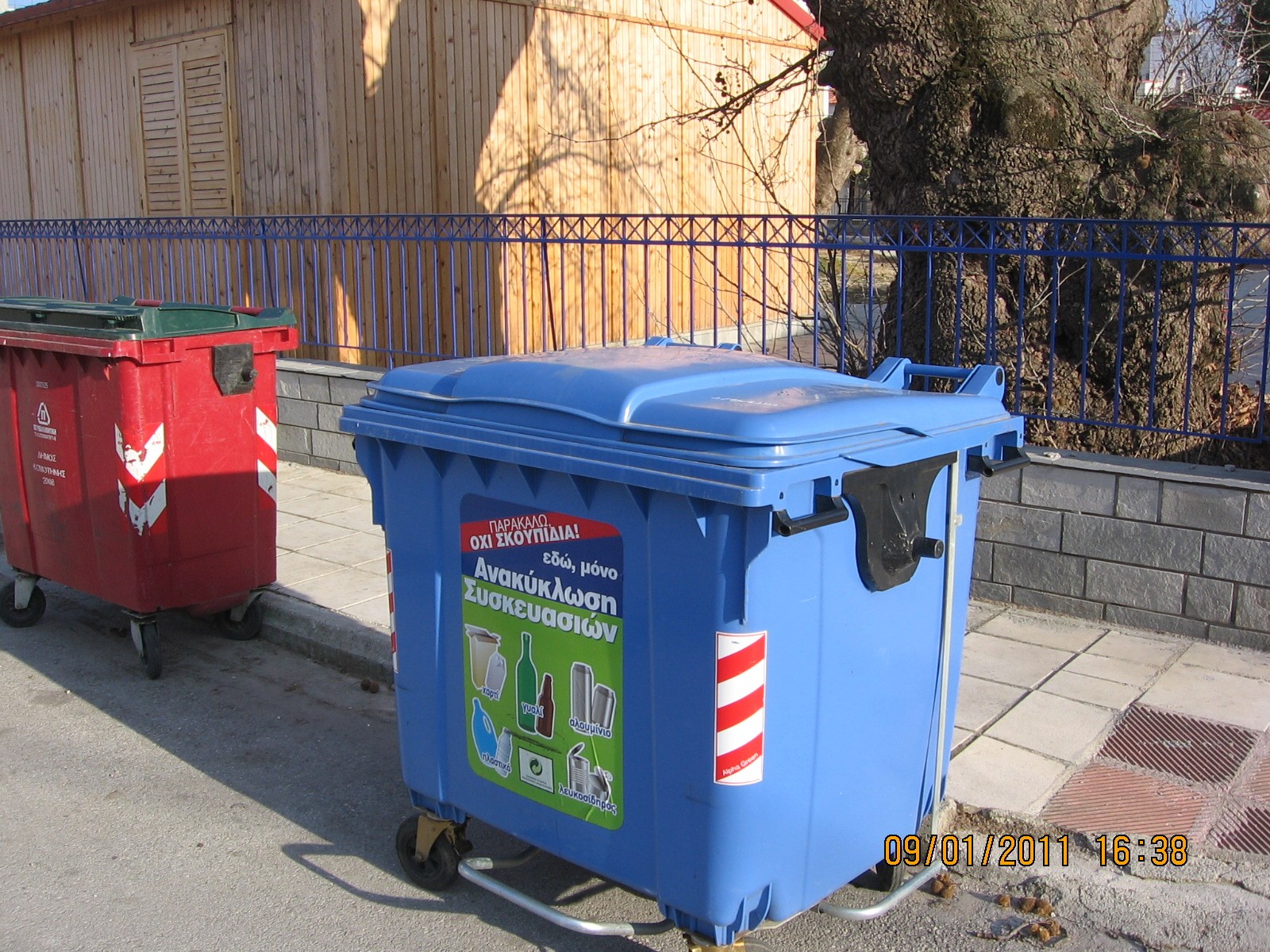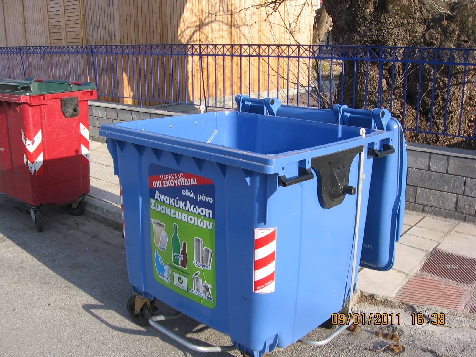 Εικόνα 2. Μπλε κάδος για ανακυκλώσιμα απόβλητα με κλειστό και ανοιχτό καπάκι.